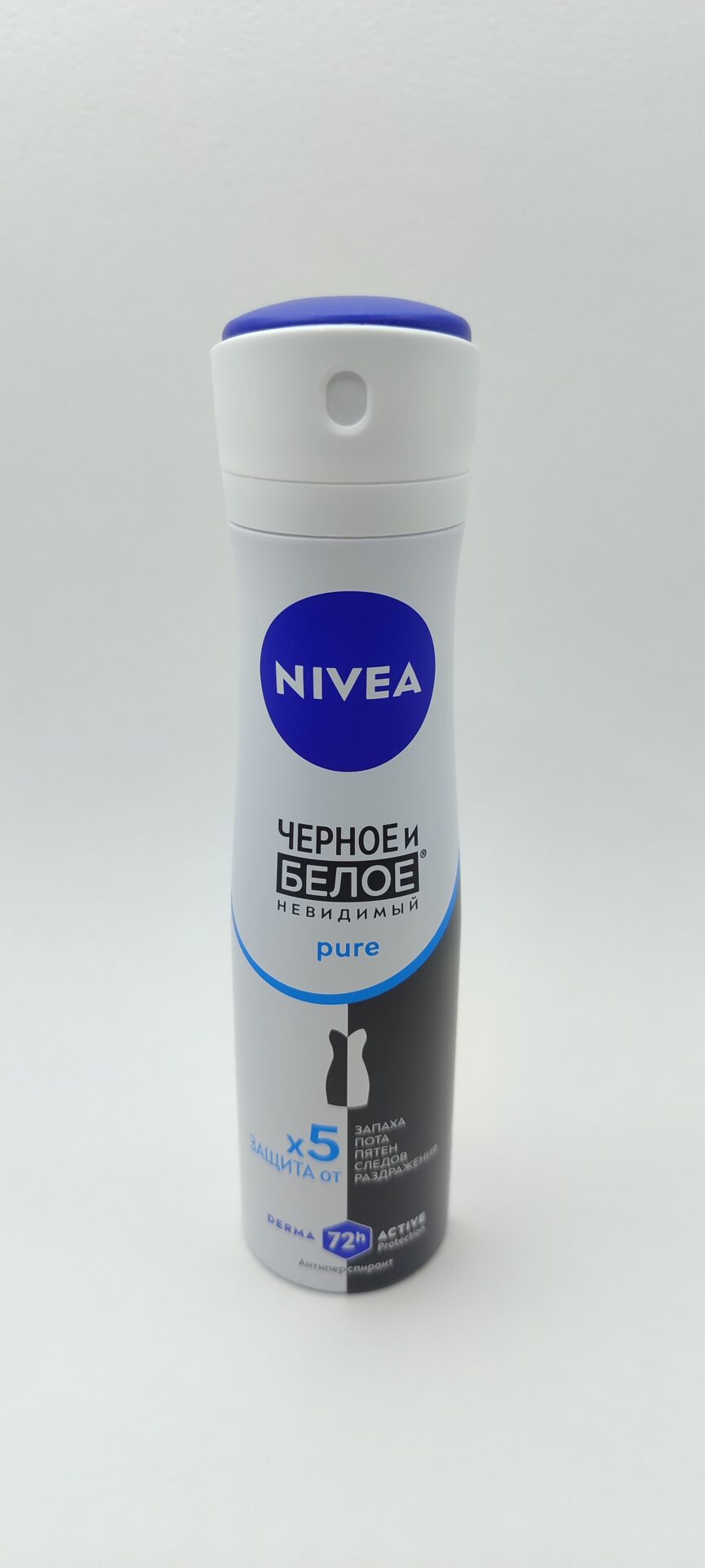 Дезодорант — антиперспирант спрей Nivea Черное и Белое Невидимый Pure 150 мл. Обеспечивает защиту от пота до 48 часов без следов на одежде.